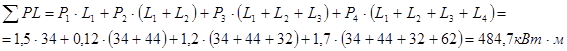- суммарный момент нагрузки, Вт. м, равный сумме произведений приложенных нагрузок, протекающих по участку на длину этого участка или равный сумме произведений приложенных нагрузок в Вт на длину от начала линии L в м.