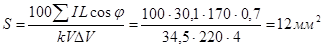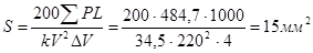 k - удельная проводимость материала проводов, принимаемая для алюминия равной 34,5;