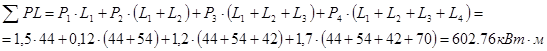 - суммарный момент нагрузки, Вт.м, равный сумме произведений приложенных нагрузок, протекающих по участку на длину этого участка или равный сумме произведений приложенных нагрузок в Вт на длину от начала линии L в м.