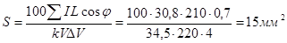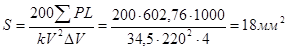 Сечение проводов по мощности определяем по формуле: