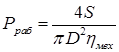 Рабочее давление жидкости (МПа) для принятого диаметра