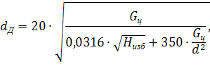 Необходимый диаметр, диафрагмы определяется по формуле, мм: