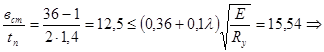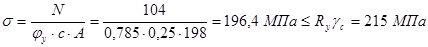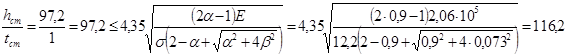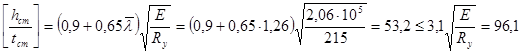 Устойчивость стенки обеспечена поэтому при проверке устойчивости учитываем