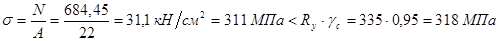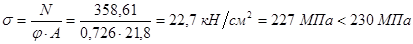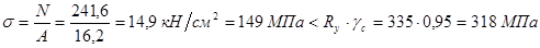 Подбор сечения в первой стойке С1 со сплющенным концом