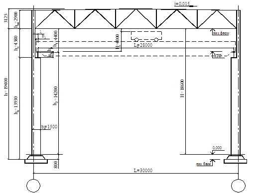 – расстояние от головки кранового рельса до низа несущих конструкций покрытия