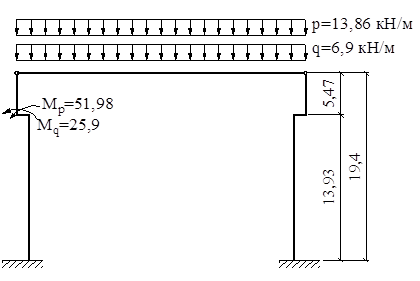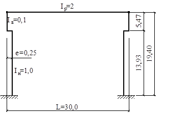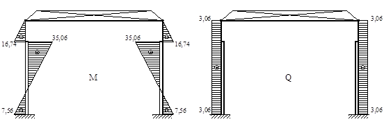 Учитывая симметрию рамы и нагрузки, пренебрегаем горизонтальным смещением верхних узлов рамы.