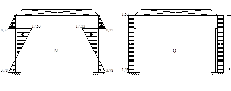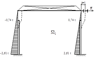 Рис. Эпюра моментов от единичного смещения верхних узлов рамы