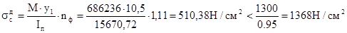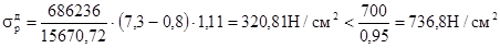 Прочность клеевого шва между фанерой и древесиной (фанера приклеивается на клее ФРФ – 50) принимается равной прочности фанеры на скалывание вдоль волокон наружных слоев 78,4Н/см2 (табл.10 СНиП II-25-80).