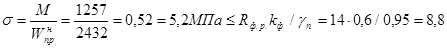 =15 МПа расчетное сопротивление изгибу клееной древесины, принимаемое с учетом большей надежности балок сечением более 13 см;
