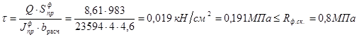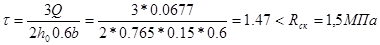Расчет клеедеревянных балок на скалывание производится на действие в сечении над опорами максимальных поперечных сил