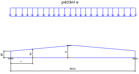 Высота балки на опоре при заданном уклоне кровли должна быть