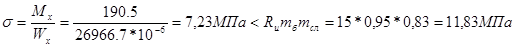 Максимальная ширина сечения балки принимается равной 16,5см.