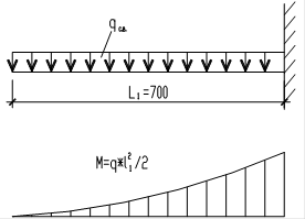 Отрицательный изгибающий момент консольной части панели: