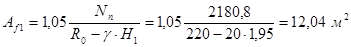 Предварительно площадь подошвы фундамента определяем как для центрально нагруженного по формуле: