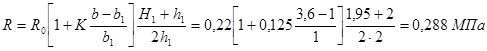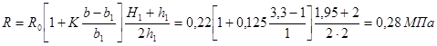 Так как заглубление фундамента меньше 2 м, ширина подошвы больше 1 м, необходимо учитывать нормативное давление на грунт по формуле: