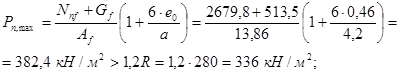 Принимаем размеры подошвы a´b=4,2´3,3 =13,86 м2.