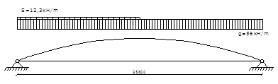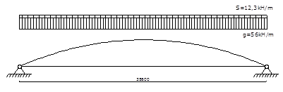 Арку рассчитываем как двухшарнирную с затяжкой. Из соображений унификации блоков ось арки выполняем по круговому очертанию.