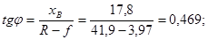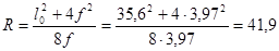 - стрела подъема, принятая равной примерно 1/9 пролета, то есть 3,97 м;