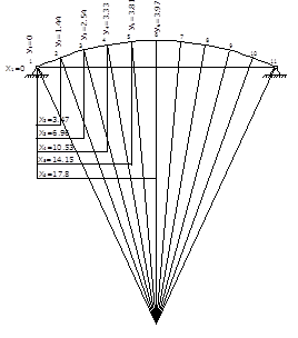 и определяем горизонтальные ординаты сечений по формулам: