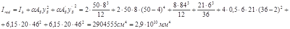 Момент инерции приведенного сечения при расстоянии до центра тяжести