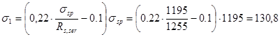 - приземная прочность бетона к моменту его обжатия, вычисляется по интерполяции при