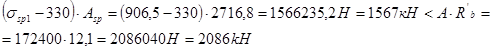 Определяем усилие обжатия бетона как для центрально обжатого элемента с учётом всей напрягаемой арматуры. При натяжении арматуры на упоры прочность затяжки проверяется из условия: