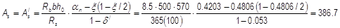 Верхний пояс армируют симметричной арматурой. Расчётные формулы для подбора симметричной арматуры