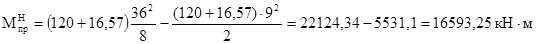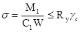 Максимальная величина нормальных напряжений, действующих в середине пролета: