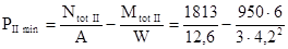 Определяем среднее PII mt, максимальное PII max и минимальное PII min давления на распределительную песчаную подушку фундамента: