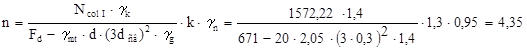 Определяем требуемое число свай в фундаменте в первом приближении при Ncol I =1572,22 кН