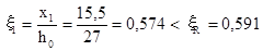 Граничное значение относительной высоты сжатой зоны по табл.2.2 п.2.3.12, учебного пособия, составляет для стали А-Ш и бетона В20 xR = 0,591