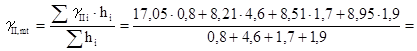 Вычислим средневзвешенное значение удельного веса грунта выше подошвы условного фундамента: