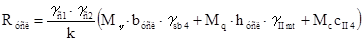 Расчетное сопротивление грунта основания условного фундамента в уровне его подошвы определим по формуле (7) СНиП 2.02.01-83: