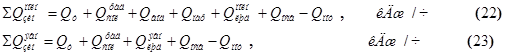 Баланс по полным и явным теплопоступлениям в зимний период года производится по следующим формулам: