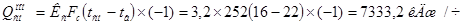где tB, tн - соответственно температуры внутреннего и наружного воздуха, Кп =4,85, Кс = 3,2 кДж/(м0С) - коэффициент теплопередачи покрытия и стены, Fп, Fс - площадь покрытия и наружной стены, м.