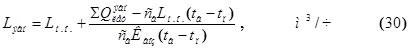 где Lмo - расход воздуха, удаляемого из обслуживаемой или рабочей зоны помещения системами местных отсосов, м3/ч. ∑Qполнлет, ∑Qявнлет - суммарные полные и явные теплопоступления в летний период года, кДж/ч в помещение; tв, tп, tу - соответственно температуры воздуха в обслуживаемой или рабочей зоне помещения, подаваемого СКВ в помещение и удаляемого из помещения