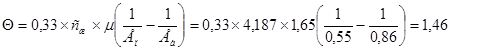 5. Для определения величины запаса по теплообменной поверхности через расчетную точку проводят луч из начала координат до пересечения с выбранной кривой Θж (Θв). Абсцисса и ордината точки пересечения определяют значения Θуж и Θув, соответствующих реальному процессу теплопередачи при расчетном расходе воды, определяемом значениями Θрв и Θрж.