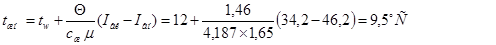 Здесь tв.к.=22,25°С, tв.н.=13,25°С - соответственно конечная и начальная температура воздуха в процессе его обработки в ВН, tж.к.=40°С, tж.н.=70°С - конечная и начальная температура теплоносителя в ВН.