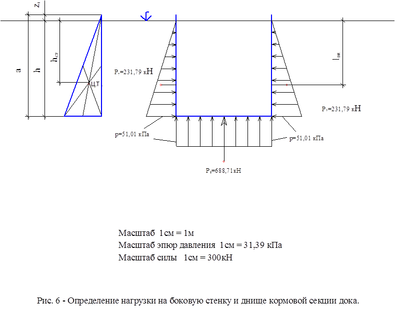 Расчет гидростатических нагрузок на кормовую секцию дока