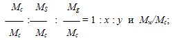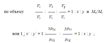 7) Начальный состав бетона в частях выражаем соотношениями: