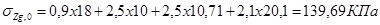 . Для вертикали, проходящей через середину подошвы фундамента, находим напряжения от собственного веса грунта