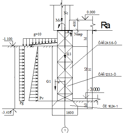 3.4 Подбор размеров подошвы фундамента для сечения 1–1