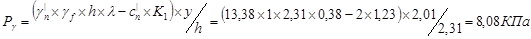 Определим интенсивность давления грунта: