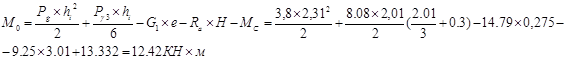 Момент в уровне подошвы фундамента: