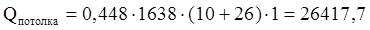 По формуле (7) рассчитываем теплоту, теряемую через потолок: