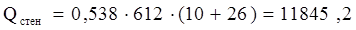 По формуле (7) рассчитываем теплоту, теряемую через стены: