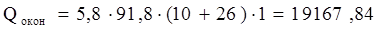 По формуле (7) рассчитываем теплоту, теряемую через окна: