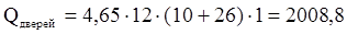 4) Рассчитываем теплоту теряемую через двери коэффициент теплопередачи через двери (одинарные):
