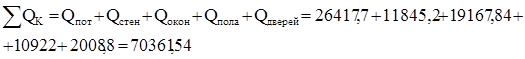 Таким образом, теплота, теряемая через ограждающие конструкции равна: