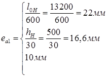 6. Учет влияния прогиба и определение величин эксцентриситетов «е»